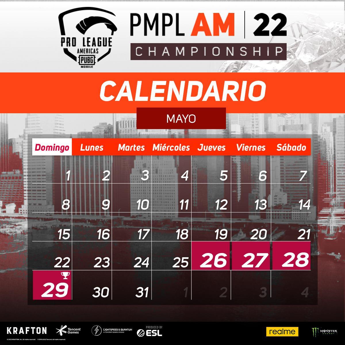 La PMPL Americas podrá ser vista en los canales oficiales de PUBG MOBILE del 26 al 29 de mayo a las 5pm Hora de México, Lima y Colombia / 6pm hora de Chile / 7pm hora de Argentina, en: Twitch, Facebook y Youtube.